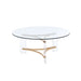 - Stylish Design: This coffee table features a modern, round tempered glass top with 10mm thickness, supported by a unique triangular chrome metal frame and acrylic base, adding a sleek, contemporary touch to any room.