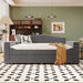 Twin Size Upholstered Daybed With Storage Armrests, Trundle And Latest Integrated Bluetooth Audio System - Gray