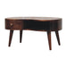 - Artisan Furniture Solid Wood Large Wave Coffee Table - This solid wood coffee table has been constructed from 100% solid mango wood in a finish and offers a unique shaped design with rounded edges. It features one open slot and one drawer with a shiny knob and Nordic-style legs. A great simple and add to the bedroom.