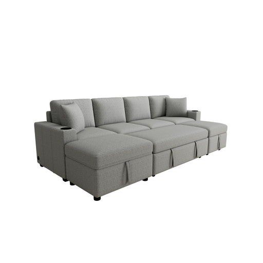Modern U-Shaped Sectional Sofa Convertible Pull-Out Sofa Bed With USB Ports And Cup Holders