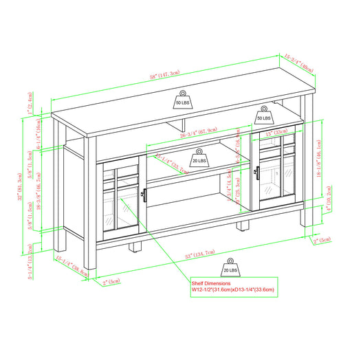 DIMENSIONS: 14" D x 64" W x 30" H Handcrafted with care using the finest quality solid Rubberwood and 1.2 inch Metal Hand-finished wood with a Wal...