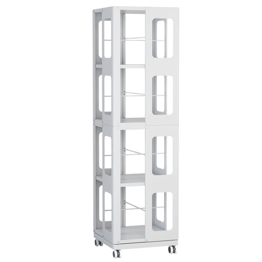 View full details4 Tier All Steel Rotating Bookshelf With 360° Wheels, Large Size Sturdy & Spacious Book Rack, New Style Bookshelf - White