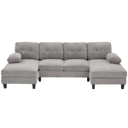 View full detailsU-Shaped Sectional Sofa 103.5" Black Chenille Fabric Couch With Dual Chaise Lounges, Storage Pockets, Armrest Pillows