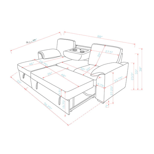 View full detailsGustavo - Sofa, Pull Out Bed, Storage Chaise, USB And Cup Holders - Beige