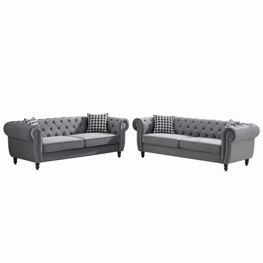 View full detailsChesterfield Velvet Upholstery Fabric Sofa With Roll Armrest & Nailhead, Mid Century Modern 3 And 3 Seater Couch