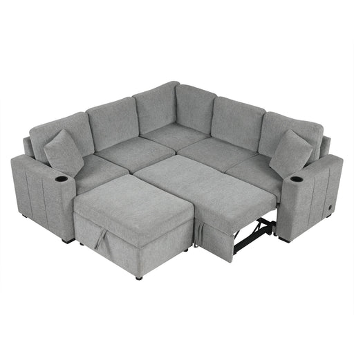 View full detailsU-Shaped Sectional Sleeper Sofa With Ample Storage Space, 2 Cup Holders And Charging Ports For Living Room