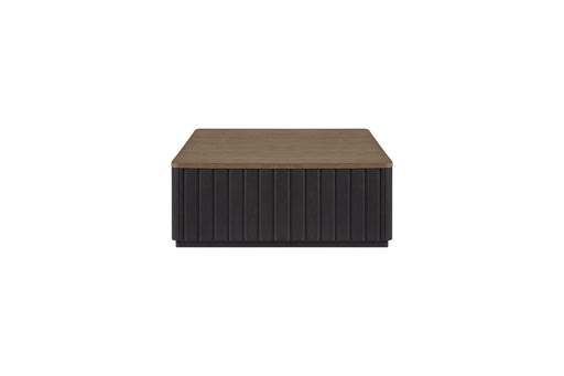 Materials and Finish: The Channel Cocktail Table is crafted from a combination of solid wood and MDF, featuring elm veneers that provide a so...
