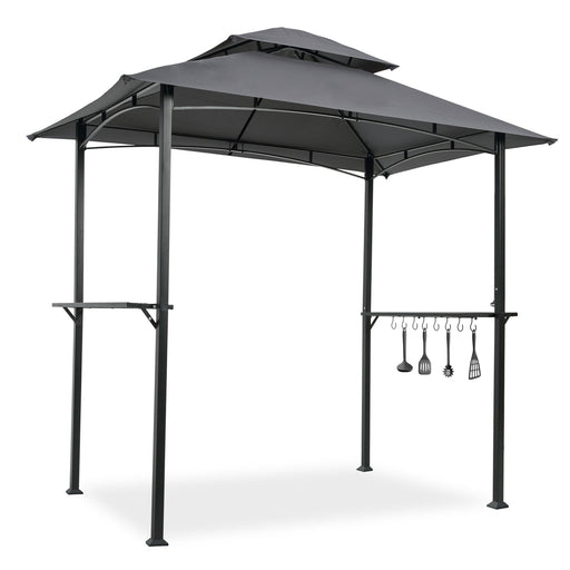 View full detailsOutdoor Grill Gazebo With Double Tier Soft Top Canopy, Steel Frame, Bar Counters & Hook
