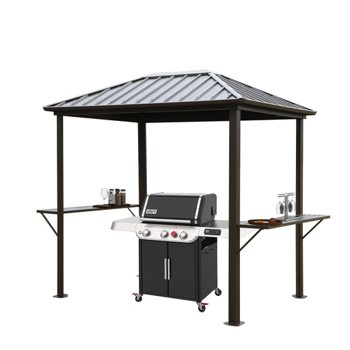 View full detailsGrill Hardtop Gazebo Outdoor Metal Hard Top Gazebo, Permanent Bbq Gazebo With Galvanized Steel, Aluminum Framed Pavilion With Shelves - Dark Brown
