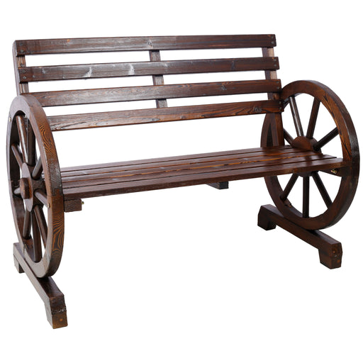View full detailsRustic Wooden Bench With Wagon Wheel Legs For Garden And Patio - Brown