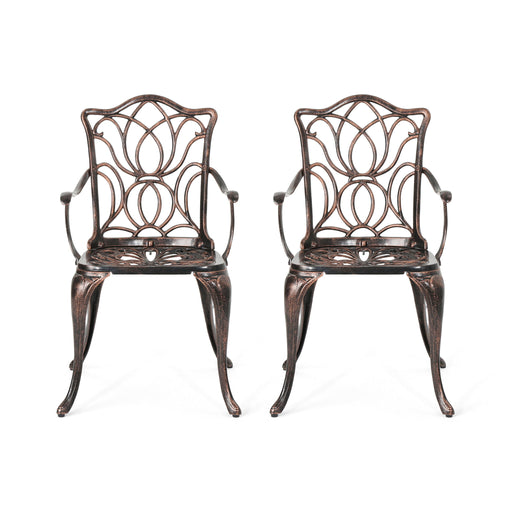 View full detailsOutdoor Dining Chair With Floral Design And Curved Saber Legs (Set of 2) - Copper