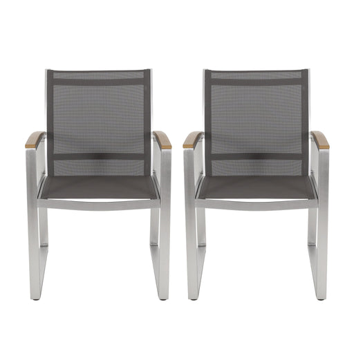 View full detailsPoetic - Outdoor Dining Chair With Faux Wood Arms And Aluminum Frame (Set of 2) - Gray