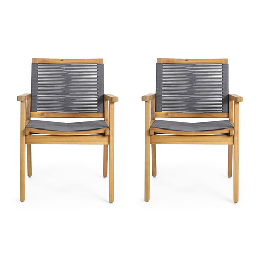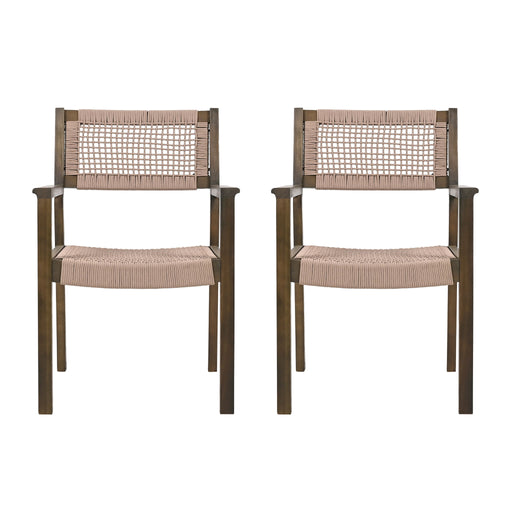 View full detailsCreative Braided Acacia Wood Outdoor Dining Table And Chairs With Armrests (Set of 2) - Teak / White