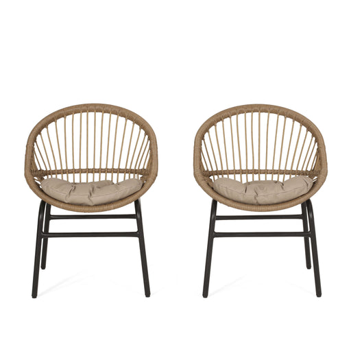 View full detailsOutdoor Accent Chair With Curved Back And Basket Frame, (Set of 2) - Light Brown / Beige