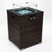 Propane Gas Square Fire Pit, Tile Tabletop With Beautiful Wicker Base For Outside