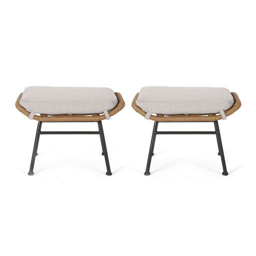View full detailsOutdoor Modern Boho Wicker Ottoman With Cushions (Set of 2)