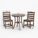 - Round patio table and two armless chairs offer a comfortable dining experience for coffee, meals, or evening drinks with family and friends.
