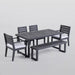 Outdoor 6 Seater Dining Set With Bench - Dark Gray / Light Gray