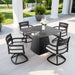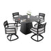 5 Piece Outdoor Pedestal Dining Set, Rounded Square Table With Flared Base And 4 Swivel Rockers - Ember Black