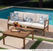 - Set Inclusions: The set includes one left arm seat, one right arm seat, one armless seat, and one table, all crafted from acacia wood with cushions made from 100% polyester.