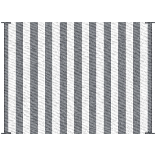 Outsunny - Reversible Outdoor Rug, 9' x 12' Waterproof Plastic Straw Floor Mat, Portable Rv Camping Carpet With Carry Bag, Large Floor Mat For Backyard, Deck, Picnic, Beach - Gray & White Striped