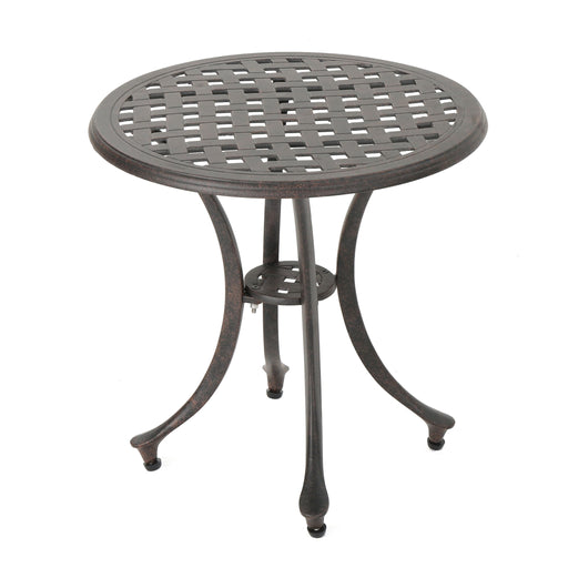 View full detailsLunaire - Outdoor Round Cast Aluminum Side Table With Lattice Top And Curved Legs - Bronze