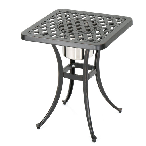 Lunaire - Outdoor Square Cast Aluminum Side Table With Lattice Top And Curved Legs - Bronze