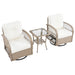 • Swivel Functionality: Each chair in this set features a 360-degree swivel, allowing for flexible seating arrangements and effortless movement. This feature lets you easily adjust your position to enjoy different views or engage in conversations without needing to physically move the chairs.