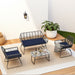 4 Piece Wicker Patio Furniture Set With Tempered Glass Table And Detachable Cushions