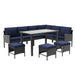 7 Piece Outdoor Furniture Set With Waterproof Cushions, Glass Table, And Space Saving Design - Blue