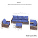 7 Pieces Patio, Wicker Dining Set With Removable Cushions Cotton And Rattan - Blue