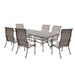 - Comfortable Sling Chairs: Six weather-resistant sling chairs provide ultimate comfort and support for outdoor dining experiences.