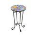 Vibrant French Country Patio Side Table Ceramic Tile And Iron Frame - Colorful / Black