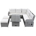 • Movable Ottoman - The set includes two movable ottomans, offering flexibility and versatility. They can serve as footrests, extra seating, or small tables for snacks, complementing the sofa set's modern design and enhancing outdoor space aesthetics.