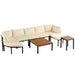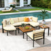 • Elegant Outdoor Aesthetic: Modern metal frame with neutral-tone cushions and natural wood-like tabletops.
