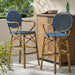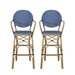 Outdoor Wicker And Aluminum French Barstools Set With Bamboo Print - Navy Blue