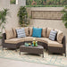 • Set Includes: The set consists of four quarter sofa seats and one coffee table, crafted from faux rattan with an iron frame, and complemented with water-resistant fabric cushions made of 100% polyester.