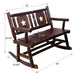 Rustic Outdoor Wood Rocking Bench Double Rocking Chair For 2 Persons With Curved Seat, Porch Rocker - Brown