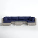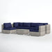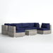 6 Person Outdoor Sofa Set With Premium Cushions, All Weather Wicker - Dark Blue / Gray Mix