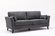 • The Damian sofa is a classic. It's simple design is guaranteed to stand the test of time. The smooth surface of the cushions amplify the sense of order and cleanliness of any room. The 2 accent pillows included are designed to keep guests comfortable according to their own needs. With dark brown solid wood legs as support, the Damian Collection is sure to fit the color palette of most rooms. Relaxing on comforting fabric has never been so easy.