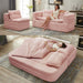 Multi Functional Sectional Sofa Bed With Independent Chaise Lounge And Functional Blanket, Convertible King Size Bed, Deep Seat - Baby Pink