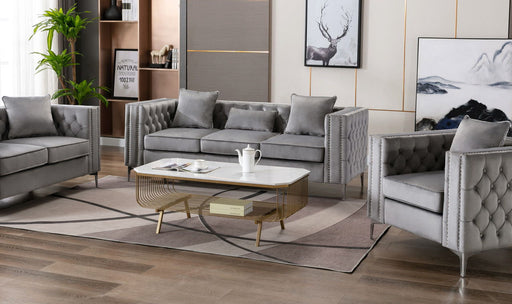 The Callie sofa provides world-class comfort and style with a tufted cushion design and metal legs. A great look for formal gatherings yet perfect ...