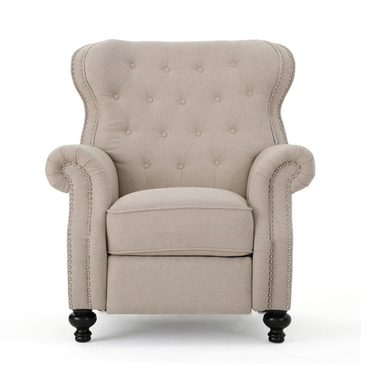Elegant Wingback Design: This classic recliner boasts a timeless wingback silhouette, adorned with studded accents for a sophisticated touch, blen...