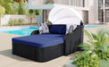 Outdoor Sunbed With Adjustable Canopy, Double Lounge, Daybed - Black / Blue