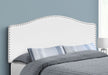 - Elegant Design: This upholstered headboard features an arched top in a white leather-look fabric, complemented by a silver-finish nailhead trim for a sophisticated, modern appearance.