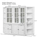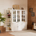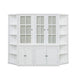 Retro Style Wall Suit With Glass Doors, 75.25" Tall Display Cabinets & Triangle Sided Bookshelves - White
