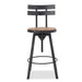 Rustic Metal Barstool With Wooden Seat - Black Brush Silver